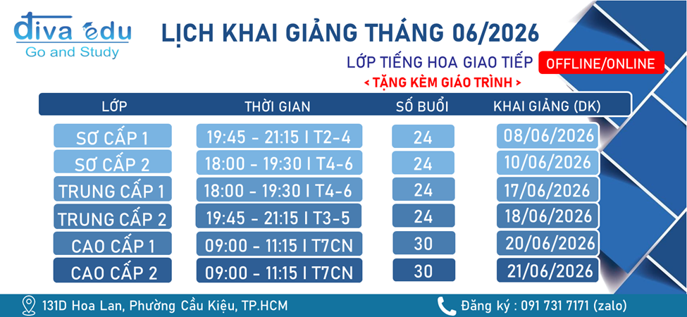 LỊCH KHAI GIẢNG CÁC LỚP TIẾNG HOA GIAO TIẾP THÁNG 06/2026