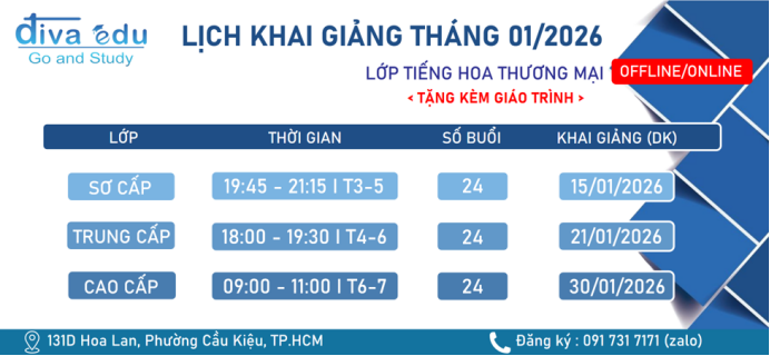 LỊCH KHAI GIẢNG CÁC LỚP TIẾNG HOA THƯƠNG MẠI THÁNG 01/2026