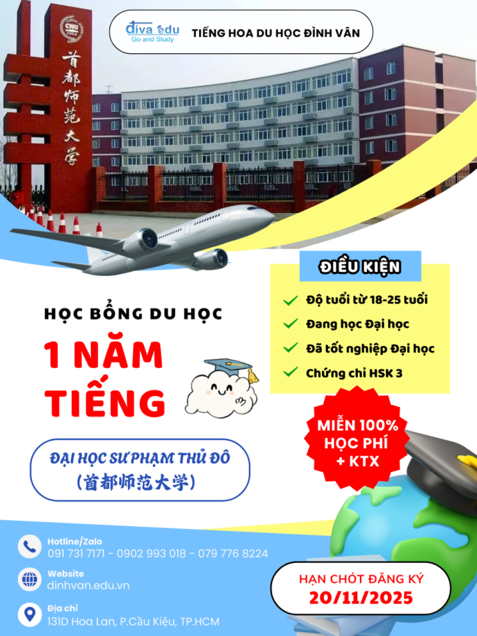 Chương trình học bổng 1 năm tiếng tại Đại học Sư phạm Thủ đô Bắc Kinh không chỉ là cơ hội học tập tiếng Trung trong môi trường quốc tế, mà còn là bước khởi đầu quý giá giúp bạn mở rộng tầm nhìn, trau dồi kỹ năng và định hướng tương lai.